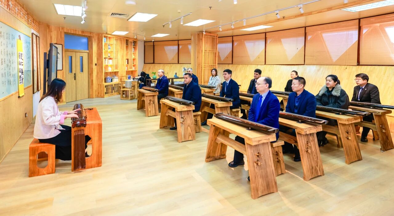 会后,代表团一行参加塔吉克斯坦来华留学生见面会,同塔方学子亲切交谈,勉励学生们珍惜在华留学的宝贵时光,精进专业技能、学有所成。代表团参观了我校中华优秀传统文化中心暨古琴弦歌基地,深入了解我校办学条件与特色优势,沉浸式感受古琴弦歌等中华优秀传统文化的独特魅力,对我校国际化办学成果及深厚的文化育人氛围给予高度赞赏。